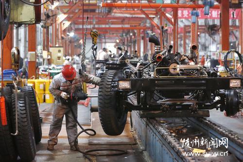 開年以來,東風(fēng)隨州專用汽車有限公司持續(xù)呈現(xiàn)產(chǎn)銷兩旺的良好形勢(shì),目前已銷售底盤1319臺(tái)、改裝車161臺(tái)。圖為東風(fēng)隨州專用汽車有限公司忙碌的生產(chǎn)線。 (隨州日?qǐng)?bào)全媒體記者徐斌攝)