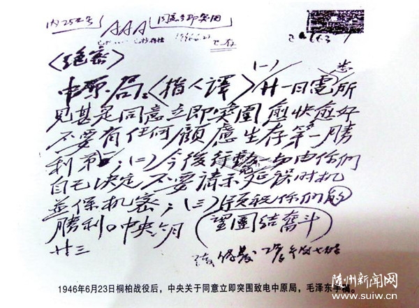 1939年1月,李先念率部南下進駐漿溪店,建立四望山敵后根據地,由此演繹一曲—— 烽火歲月熱血戰(zhàn)歌 中原局和中原軍區(qū)成立舊址 十年烽火漫漿溪 ——探訪中原軍區(qū)1945年誕生地 隨州日報全媒記者 陳長軍 通訊員 沈憲權 彭俊 烽火十年,熱血遍灑。漿溪店,一片鐫刻著紅色記憶的土地。 漿溪店,位于鄂豫交界桐柏山南麓的廣水市吳店鎮(zhèn)。特殊的地理位置造就了她的特殊地位,她既是新四軍第五師重要活動地、中共中央中原局和中原軍區(qū)二次組建地、桐柏戰(zhàn)役策源地,也是桐柏區(qū)黨委、桐柏行署和桐柏軍區(qū)成立地。從1939年到1949年,在長達十年的艱苦斗爭中,漿溪店見證了桐柏戰(zhàn)役、中原突圍等中國革命史上的壯麗華章。 銘記歷史,致敬英雄。3月16日,記者來到廣水市吳店鎮(zhèn)漿溪店,追尋紅色足跡,重溫崢嶸歲月,感懷先輩精神。 三大主力勝利會師 再次組建中原軍區(qū) 1939年1月,李先念受中共中央中原局(先后組建三次,這是第一次,在1938年11月組建于延安,后改為華中局)的委派,率新四軍豫鄂獨立游擊大隊(是新四軍五師前身,當時對外稱新四軍獨立游擊支隊,李先念任司令員,周志堅任參謀長)160余人從河南確山竹溝出發(fā),南下四望山,進駐漿溪店,聯(lián)系周邊抗日武裝,建立了以漿溪店為中心的四望山敵后抗日根據地。2月27日,參謀長周志堅率領的游擊大隊在余家店與日偽軍遭遇,共斃敵20余名。余家店戰(zhàn)斗,是新四軍挺進鄂中在鄂豫邊第一次與日軍正面作戰(zhàn),戰(zhàn)果雖小,影響甚大。 此后,李先念率領新四軍豫鄂獨立游擊大隊越過平漢鐵路來到鄂東,又轉向鄂中。6月,與陳少敏部在趙家棚會合,組建成立新四軍挺進團。 1939年11月16日,在漿溪店與花山之間的東岳廟召開了四望山會議。會議傳達了中原局書記劉少奇的指示,將豫南、鄂東、鄂中黨和軍隊實行統(tǒng)一領導,成立新的鄂豫邊區(qū)黨委,陳少敏任代理書記;組建新四軍鄂豫挺進縱隊,李先念任司令員。不到一年時間,隊伍由160余人發(fā)展到近萬人。 1945年3月,日軍發(fā)動豫西鄂北戰(zhàn)役,新四軍五師為牽制敵人西進,挺進豫西南,著手恢復四望山根據地。4月29日,李先念率五師主力由大悟山向北挺進,與任質斌所率領的五師一部在應北會合后再次進駐漿溪店,將國民黨頑軍全部驅逐出四望山地區(qū)。 四望山根據地的恢復和鞏固,不僅為五師創(chuàng)造了新的指揮中心,也標志著鄂豫邊區(qū)由長期反侵略戰(zhàn)爭進入反對國民黨發(fā)動內戰(zhàn)的重要轉折時期。 1945年8月15日,日本宣布投降后,新四軍五師的后勤、領導機關及邊區(qū)機關由大悟遷至漿溪店和吳家店一帶。 在漿溪店尹家灣,看到修繕后的李先念、鄭位三、陳少敏等舊居修舊如舊,基本保持著原貌。走進舊居,一件件革命文物、一幅幅照片仿佛向人們訴說著當年新四軍艱苦戰(zhàn)斗的故事。 1945年8月29日,國民黨豫南挺進軍第十三縱隊司令程道榮率部5000余人起義(這是抗戰(zhàn)勝利后全國第一支國民黨起義隊伍),壯大了新四軍第五師的反內戰(zhàn)力量。收編程道榮部后,新四軍五師所轄的十三旅、十四旅、十五旅均到達漿溪店、吳家店地區(qū)集結,著手整編部隊,決定成立野戰(zhàn)軍。 9月15日,在漿溪店召開野戰(zhàn)縱隊成立大會。9月16日,李先念、鄭位三、陳少敏、任質斌在漿溪店致電中央軍委,提議成立新四軍鄂豫皖指揮部。9月25日,宣布“鄂豫皖中央局開始執(zhí)行職務”。 10月17日,新四軍五師野戰(zhàn)縱隊分別在漿溪店和吳家店舉行了“反對內戰(zhàn),爭取和平”的誓師大會。10月20日,發(fā)起桐柏戰(zhàn)役。戰(zhàn)役第一階段,先后解放了桐柏、棗陽、新野、唐河4座縣城和固縣、平氏、新城、雙溝、湖陽等集鎮(zhèn),控制了以桐柏山為中心的廣大地區(qū)。 為了避免國民黨軍對分散在黃河以南的八路軍、新四軍各個擊破,10月24日,王震、王首道率領的八路軍南下支隊和王樹聲、戴季英率領的河南軍區(qū)部隊,以及冀魯豫軍區(qū)第八團,與李先念、鄭位三率領的新四軍第五師勝利會師。三大主力會師,充實了鄂豫皖中央局的力量。10月30日,中共中央決定將鄂豫皖中央局改為中共中央中原局,鄭位三代理書記(書記徐向前未到職)。同時成立中原軍區(qū),李先念任司令員,鄭位三兼政委。中原局、中原軍區(qū)領導機關及后勤機關仍設在漿溪店。中原局和中原軍區(qū)的成立,統(tǒng)一了中原地區(qū)的領導,形成了一個“鐵拳”,直接威脅著蔣軍出川的大門。 1946年6月26日,蔣介石悍然撕毀停戰(zhàn)協(xié)定,發(fā)動了對中原解放區(qū)的大舉圍攻,挑起全面內戰(zhàn)。當晚,我中原軍區(qū)主力分路進行突圍。中原突圍,揭開了全國解放戰(zhàn)爭的序幕。 7月1日,由李先念、鄭位三和王震率領的北路突圍部隊,到達應山以北的泉口店、吳家店、漿溪店一線,就地休整。漿溪店再次成為我軍重整部隊的重地。 中原突圍,打亂了國民黨軍的部署,牽制國民黨軍24個師、8個游擊縱隊不能他調,有力配合了其他解放區(qū)的斗爭。陳毅司令員稱贊:“如果沒有中原部隊的戰(zhàn)略牽制,那就可能沒有上黨戰(zhàn)役、邯鄲戰(zhàn)役和華東七戰(zhàn)七捷的勝利。” 劉鄧大軍南下漿溪店 打響第二次桐柏戰(zhàn)役 據史料記載,1947年5月15日,中共中央晉冀魯豫中央局開會研究