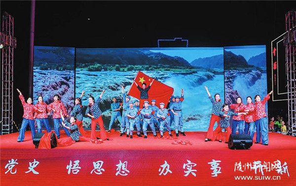 在中國(guó)共產(chǎn)黨百年華誕來(lái)臨之際,我市各地群眾舉行豐富多彩的慶;顒(dòng)。圖為6月29日,大洪山風(fēng)景名勝區(qū)黨員舉行集中宣誓活動(dòng),干部職工和群眾齊聲高唱《社會(huì)主義好》等歌曲,隆重慶祝中國(guó)共產(chǎn)黨成立100周年。(隨州日?qǐng)?bào)全媒記者李文軍、通訊員汪秀艷攝) 6月28日,以“波瀾壯闊100年·黨在我心中”為主題的隨州市老年書(shū)畫(huà)展在曾都區(qū)群眾藝術(shù)館舉辦,展出了120幅書(shū)畫(huà)精品。(隨州日?qǐng)?bào)全媒記者李文軍攝) 永遠(yuǎn)跟黨走,共筑中國(guó)夢(mèng)。6月28日晚,由隨州高新區(qū)城東工作局主辦、吳家老灣社區(qū)承辦的“百年征程心向黨砥礪奮進(jìn)鑄輝煌”慶祝建黨100周年文藝匯演活動(dòng)在隨州萬(wàn)達(dá)廣場(chǎng)舉行。(隨州日?qǐng)?bào)全媒記者李文軍、通訊員孫曉睿攝) |