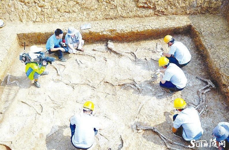 央視現(xiàn)場直播M111墓葬隨葬馬坑發(fā)掘過程。該馬坑是葉家山墓地7座馬坑中最大的一座,共隨葬10匹馬。 (記者 李文軍 攝) 葉家山墓地航拍圖。 (記者 李文軍 攝) 記者許享紅、張琴報道:至7月3日,隨州葉家山西周墓二期考古發(fā)掘,出土珍貴文物約500件(套),主要有銅器、原始瓷器和漆木器,發(fā)現(xiàn)的編鐘比曾侯乙編鐘早500年,距今約3000年;西周馬坑,也首次在我國南方地區(qū)發(fā)現(xiàn)。對此震驚世界的考古發(fā)掘工作,中央電視臺新聞頻道進行了首次現(xiàn)場直播,并還將連續(xù)直播。 |