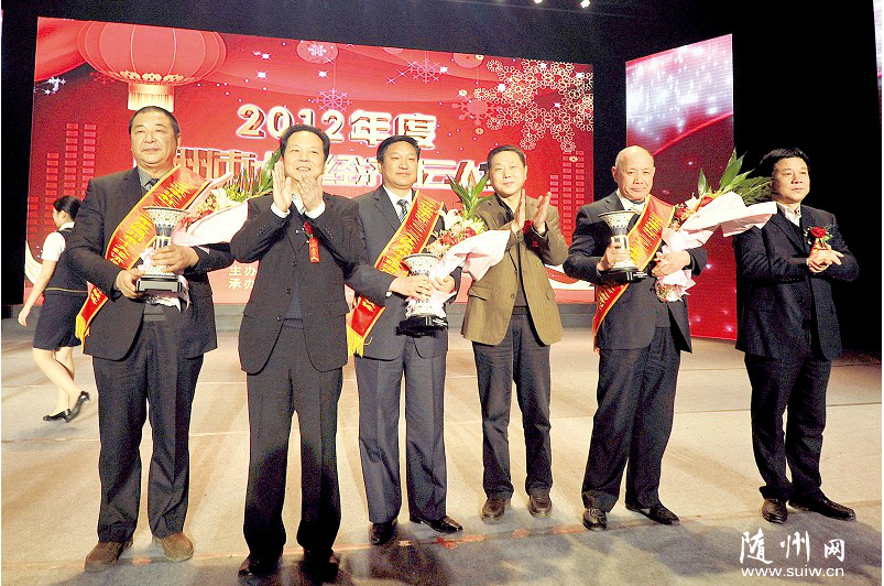 2012年度隨州市十大經(jīng)濟風云人物揭曉 劉曉鳴肖伏清出席頒獎典禮 市委書記劉曉鳴(左二),市政協(xié)主席肖伏清(右三),市委常委、市委秘書長涂勝華(右一)向十大經(jīng)濟風云人物頒獎。 (隨州日報記者 李文軍 攝) 隨州網(wǎng)訊 記者馮家園報道:2月28日晚,神農(nóng)大劇院星光熠熠。2012年度隨州市十大經(jīng)濟風云人物頒獎晚會隆重舉行。獲獎的經(jīng)濟風云人物陸續(xù)上臺,從市領(lǐng)導手中接過象征榮譽的獎杯。 市委書記劉曉鳴,市政協(xié)主席肖伏清,市領(lǐng)導涂勝華、陳傳根、譚志勇、袁慧敏、羅銘、王志勇、羅俊杰、包毅國、曾憲國等,為2012年度隨州經(jīng)濟風云人物特殊貢獻獎 (3名)、“2012年度隨州十大經(jīng)濟風云人物”(10名)獲得者及提名獲獎?wù)撸?/SPAN>5名)頒獎。 “2012年度隨州市十大經(jīng)濟風云人物”評選活動,是由市委宣傳部主辦,隨州日報社、隨州電視臺共同承辦。旨在弘揚“經(jīng)濟人物”的先進理念和睿智,激勵更多企業(yè)家為隨州經(jīng)濟建設(shè)發(fā)展發(fā)揮更大作用。評選歷時兩個多月,得到了市委市政府的高度重視。經(jīng)過推薦、審核、公示、投票、評審等環(huán)節(jié),18名“經(jīng)濟人物”從眾多推薦者中脫穎而出。 “大而不自戀,大而愈知小……大者擔當,大愛無疆!边@是獲得特殊貢獻獎,湖北齊星公司董事長徐德的頒獎詞。他說,承擔責任是對社會的回報,責任也是對社會發(fā)展的接力,將敬業(yè)有為,做好工作。同時獲得特殊貢獻獎的隨州市煙草專賣局局長劉洪明表示,將繼續(xù)秉承潛心做事,低調(diào)做人的態(tài)度,推進煙草事業(yè)快速發(fā)展,為隨州經(jīng)濟建設(shè)再立新功。廣水卷煙廠廠長彭濤鳴也獲此榮譽。 頒獎典禮上,10位年度經(jīng)濟風云人物豪邁承諾,堅持承擔責任,不斷創(chuàng)新,帶領(lǐng)企業(yè)做大做強,搏擊更廣闊的的市場,用更大成績回報社會和人民,為圣地車都的建設(shè)作出更大的貢獻。