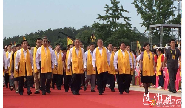 海內(nèi)外近萬炎黃子孫再聚烈山拜謁始祖 馬飚許嘉璐張榮恭李鴻忠楊松等出席 隨州網(wǎng)訊 記者陳曉林報(bào)道:同根同祖,血濃于水;同心同愿,祈福中華。2015年6月12日,農(nóng)歷四月二十六,乙未年世界華人炎帝故里尋根節(jié)開幕式暨拜祖大典在湖北隨州隆重舉行。海內(nèi)外近萬名炎黃子孫再聚烈山,拜謁中華民族的人文始祖炎帝神農(nóng)氏,緬懷圣祖功德,祈愿國泰民安、人民幸福。 全國政協(xié)副主席馬飚,第十屆全國人大常委會(huì)副委員長、中華炎黃文化研究會(huì)會(huì)長許嘉璐出席大典。 中國國民黨中央評(píng)議委員會(huì)主席團(tuán)主席張榮恭,中共湖北省委書記、省人大常委會(huì)主任李鴻忠,湖北省政協(xié)主席楊松,海峽兩岸關(guān)系協(xié)會(huì)副會(huì)長孫亞夫,中國文學(xué)藝術(shù)界聯(lián)合會(huì)副主席、書記處書記楊承志,中華全國歸國華僑聯(lián)合會(huì)副主席康曉萍,中華炎黃文化研究會(huì)常務(wù)副會(huì)長兼秘書長張希清,衛(wèi)生部原副部長、世界中醫(yī)藥學(xué)會(huì)聯(lián)合會(huì)會(huì)長佘靖,省領(lǐng)導(dǎo)李春明、傅德輝、梁偉年、甘榮坤、劉善橋,省老領(lǐng)導(dǎo)李明波、林志慧,陜西省政府原副省長吳登昌,海峽兩岸旅游交流協(xié)會(huì)秘書長劉克智,中國科學(xué)院院士陳可冀,中國工程院院士李連達(dá),泰國國防宗教文化部副主席周力平,全美華裔總商會(huì)主席梁冠軍,香港特區(qū)政府駐漢代表方明遠(yuǎn),澳門特區(qū)政府駐京代表束文剛,臺(tái)灣苗栗縣前縣長劉政鴻,中國國民黨中央委員會(huì)常務(wù)委員曾文培,中國國民黨中央委員會(huì)委員翁文斌、詹昭榮,臺(tái)灣中華神農(nóng)大帝協(xié)進(jìn)會(huì)副理事長方雕義,抗戰(zhàn)老兵靳明、孫維禮,中共隨州市委書記劉曉鳴、市長郄英才等參加大典。 今日的隨州,陽光燦爛,惠風(fēng)和暢、生機(jī)盎然。炎帝故里景區(qū)門前,鑼鼓喧天,載歌載舞。炎帝圣像莊嚴(yán)偉岸,令人起敬。嘉賓們懷著崇敬的心情,陸續(xù)步入拜祖廣場,共同期待著激動(dòng)人心的一刻。 上午8時(shí)38分,在《詩經(jīng) 小雅 鹿鳴》的兒童吟誦聲中,大典開始。經(jīng)過奉祀方陣入場、祭祀舞蹈《八佾舞》等環(huán)節(jié),大典進(jìn)入拜祖儀式。副省長甘榮坤主持儀式。拜祖儀式共有九項(xiàng)儀程: ——大典致辭。甘榮坤致歡迎辭。他說,“編鐘鳴盛世,心香敬始祖。今天,來自世界各地的炎黃子孫齊聚烈山,慎終追遠(yuǎn),共拜始祖。……無論時(shí)代如何變遷,炎帝精神始終是中華民族自強(qiáng)不息的力量源泉,始終是炎黃子孫團(tuán)結(jié)奮斗的精神旗幟,激勵(lì)著中華民族從遠(yuǎn)古走向文明,從蒙昧走向輝煌。” ——大典開幕。第十屆全國人大常委會(huì)副委員長、中華炎黃文化研究會(huì)會(huì)長許嘉璐宣布大典開幕。 ——恭啟圣門。全國政協(xié)副主席馬飚和中共湖北省委書記、省人大常委會(huì)主任李鴻忠共同開啟炎帝神農(nóng)大殿圣門。 ——點(diǎn)燃圣火。在《三獻(xiàn)禮》的唱誦樂舞聲中,中國科學(xué)院院士陳可冀、香港特區(qū)政府駐漢代表方明遠(yuǎn)、澳門特區(qū)政府駐京代表束文剛、臺(tái)灣中華神農(nóng)大帝協(xié)進(jìn)會(huì)副理事長方雕義和來自全國的30名鄉(xiāng)村教師共同點(diǎn)燃炎帝圣火。 ——敬獻(xiàn)花籃。各級(jí)領(lǐng)導(dǎo)和嘉賓馬飚、許嘉璐,張榮恭、劉政鴻、曾文培、孫亞夫、楊承志、康曉萍、張希清,李鴻忠、楊松、李春明,甘榮坤,劉曉鳴、郄英才等分批敬獻(xiàn)花籃。 ——敬獻(xiàn)高香。華人華僑、港澳臺(tái)人士、文化界、企業(yè)界、宗教界等各界代表劉克智、周力平、梁冠軍、姚征、胡曉軍、馬克、翁文斌、詹昭榮、陳興國、陳雄英,劉紅軍、佘靖、李連達(dá)、吳登昌、任學(xué)安、米東明、李抗美、劉富民、孫光榮、余世存、常文光、張杰、鄧建玲、何亞非、焦正軍、邱曙平、嚴(yán)介和、汪力成、曾穎堂、莫躍明、陳宏志、田長桉、劉俊剛、尼瑪扎西、沈田義、劉廣東、劉寶林、徐德、釋印順、吳誠真等依次敬獻(xiàn)高香。 ——恭讀頌祖文。炎帝子孫代表恭讀《頌炎帝文》(全文另發(fā))。 ——共拜始祖,F(xiàn)場全體人員向炎帝神農(nóng)行施拜禮。 ——唱誦始祖。合唱《炎帝大歌》,將頌揚(yáng)炎帝功德的贊歌再次唱響在烈山之上。隨后,匯聚世界各地華人心聲的《赤子之聲》,表達(dá)了海內(nèi)外華人華僑對(duì)祖國民族的認(rèn)同,對(duì)中華文化的守望,對(duì)身為炎黃子孫的驕傲和自豪。由海峽兩岸學(xué)子共同表演的編鐘樂舞《神農(nóng)贊》,以及壓軸歌曲《炎帝情,中華夢》,引爆了唱誦的高潮。 在熱烈祥和的氣氛中,簡樸而隆重的拜祖大典告成。參加大典的嘉賓們稱贊,今年的拜謁大典,既嚴(yán)格遵循了規(guī)制,又與時(shí)俱進(jìn)地增添了社會(huì)主義核心價(jià)值觀、“一帶一路”戰(zhàn)略、抗戰(zhàn)勝利70周年等新元素,大氣磅礴,令人難忘。 大典由國務(wù)院臺(tái)灣事務(wù)辦公室、國家旅游局、中國文學(xué)藝術(shù)界聯(lián)合會(huì)、中華全國歸國華僑聯(lián)合會(huì)、中華炎黃文化研究會(huì)和湖北省人民政府聯(lián)合主辦。主題仍為“四海一家親,共圓中國夢”