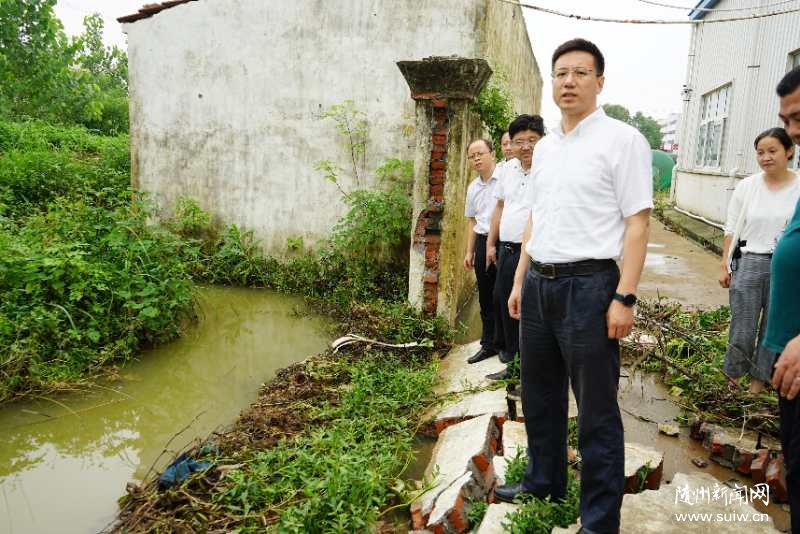7月16日8時(shí)至17日8時(shí),廣水市平均雨量134毫米,陳巷鎮(zhèn)達(dá)到202毫米,鎮(zhèn)區(qū)出現(xiàn)大量積水,該鎮(zhèn)挖了部分應(yīng)急通道,把積水引向河流?丝藖淼皆撴(zhèn)盛崗科技有限公司附近積水路段,現(xiàn)場(chǎng)指導(dǎo)排澇工作。他強(qiáng)調(diào),要立即行動(dòng),盡快將積水排出,并吸取教訓(xùn),深入摸排問題,剖析找準(zhǔn)癥結(jié),從長(zhǎng)遠(yuǎn)謀劃,完善鎮(zhèn)區(qū)排水等基礎(chǔ)設(shè)施。