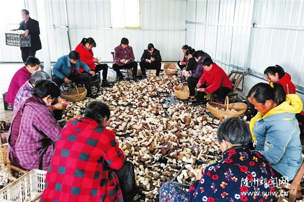 | 隨縣高城鎮(zhèn)羅家橋村鴻福興食用菌種植專(zhuān)業(yè)合作社利用國(guó)家財(cái)政扶貧產(chǎn)業(yè)發(fā)展資金種植的赤松葺菌菇喜獲豐收。圖為3月15日,該村近30名脫貧戶(hù)參與菌菇采摘、分揀、去雜、切片、烘干等工作,人均月收入近3000元。(隨州日?qǐng)?bào)全媒記者李文軍、通訊員韓鐵流攝) |