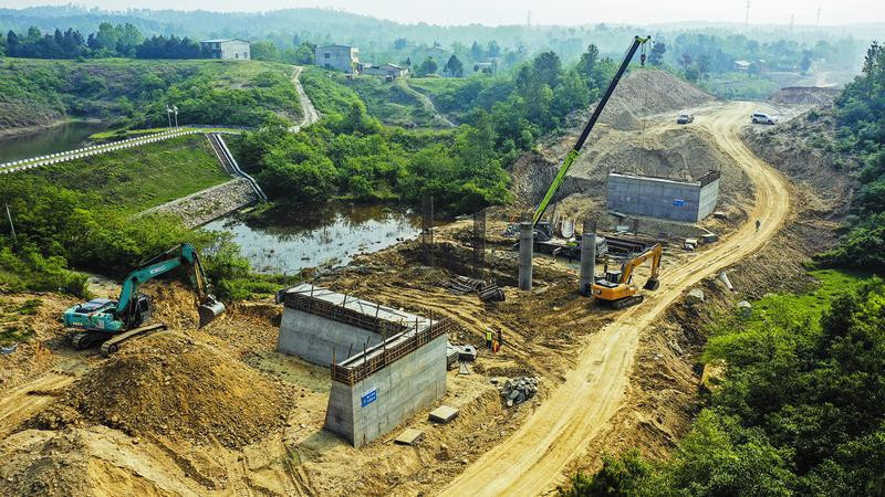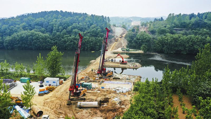 4月19日,隨州南外環(huán)道路建設(shè)現(xiàn)場(chǎng),工人們有的在架設(shè)橋墩、有的在鋪設(shè)路基涵管、有的在挖掘拖運(yùn)土石方,各種工程車來(lái)回穿梭,一派熱火朝天的建設(shè)景象。