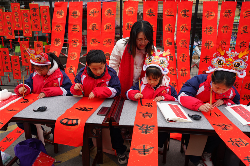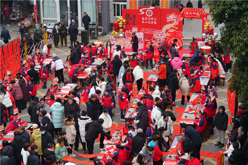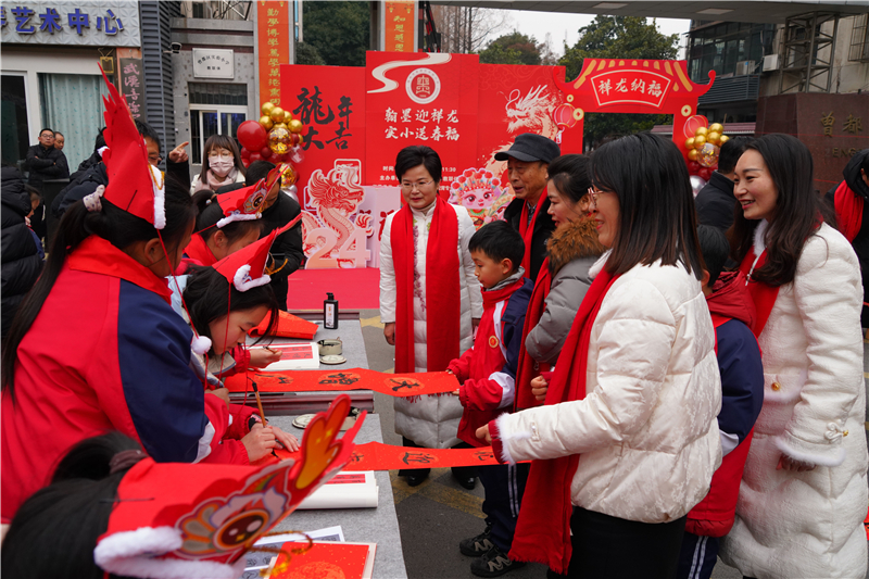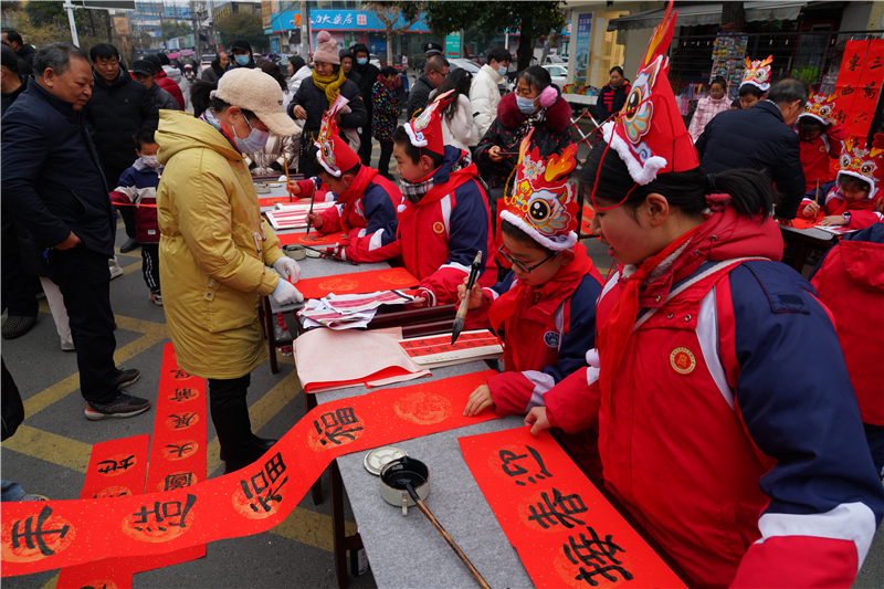 1月26日,隨州市千名師生義務送春聯(lián)活動在曾都區(qū)實驗小學啟動;顒蝇F(xiàn)場,近200名師生現(xiàn)場揮毫,為市民書寫春聯(lián)。這天,曾都區(qū)白云湖小學,文峰塔小學,云龍學校,隨縣尚市鎮(zhèn)中心小學,均川中心學校的師生共義務寫春聯(lián)3000多幅。(全媒記者 孫洪濤攝)