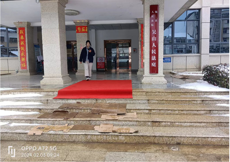 活動現(xiàn)場,吳山干職先鏟后清,借助鐵鍬、掃帚等工具清掃積雪,并將群眾辦事的必經(jīng)之路鋪上紅地毯和紙板,解除群眾雪地出入便民服務大廳辦事的安全隱患,為前來政府辦事的人民群眾開辟出一條“暖心通道”,極大地方便了行人車輛安全出行,也為寒冷的日子帶來了一絲暖意。