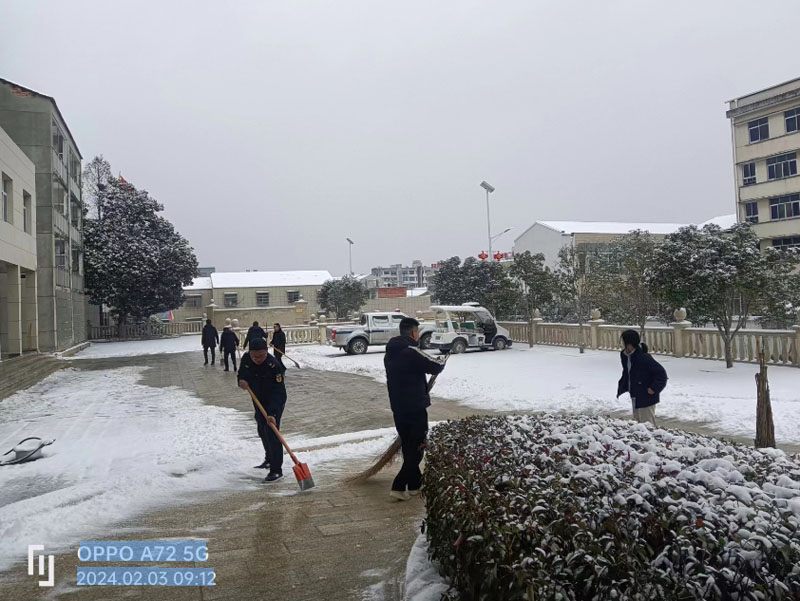 隨州新聞網(wǎng)訊 (通訊員吳優(yōu)、朱元定)接連兩日的降雪在凈化了空氣的同時,也造成吳山鎮(zhèn)政府大院大面積積雪結冰,影響了辦事群眾的正常通行,造成了一定程度的安全隱患。2月3日清晨,為方便辦事群眾進出,吳山鎮(zhèn)政府組織全體干部職工開展掃雪除冰活動,清掃出通往便民大廳的一條安全通道。