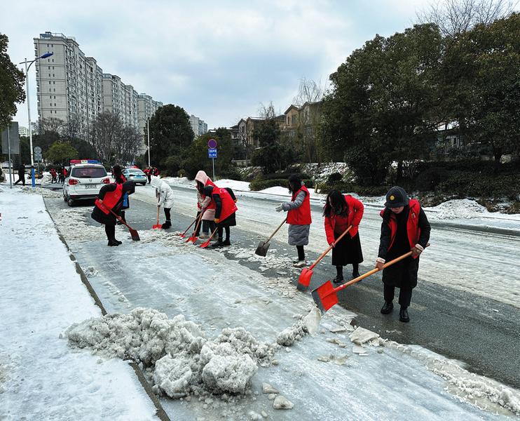 曾都區(qū)涢水街道風光社區(qū)聞雪而動,為轄區(qū)居民的安全出行和正常生活保駕護航。(隨州日報全媒記者林超攝)