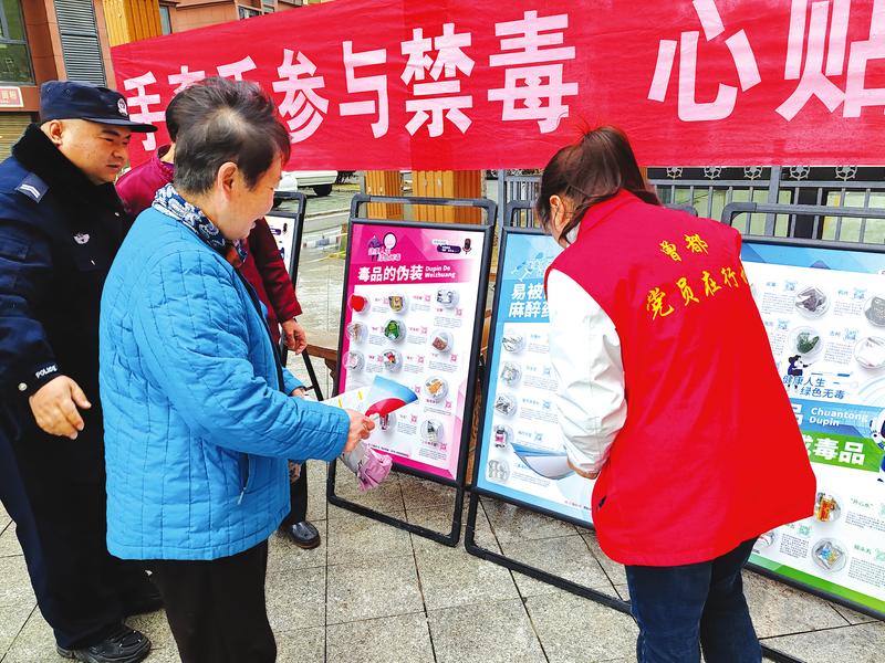 3月25日,曾都區(qū)西城街道雙龍寺社區(qū)的工作人員與熱心志愿者聯(lián)合西城派出所,走進金香韻小區(qū)開展了一場別開生面的禁毒宣傳活動,營造健康的生活環(huán)境,助力創(chuàng)建“無毒社區(qū)”。(隨州日報通訊員冷彬、黃朝恩攝)