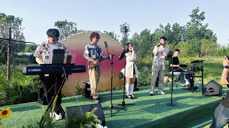 在音樂會現(xiàn)場,來自隨州的“肆井樂隊(duì)”和來自襄陽的“奧利奧樂隊(duì)”用音樂表達(dá)了青春的活力,撲面而來的音浪直擊心靈,讓人陶醉、令人動容,絢麗多彩的舞臺燈光、星星點(diǎn)點(diǎn)的裝飾燈帶、彩燈閃爍的打卡造型、燈火熠熠的天幕帳篷與觀眾手中揮舞的熒光棒交相輝映,將音樂會唯美浪漫的氛圍拉滿。