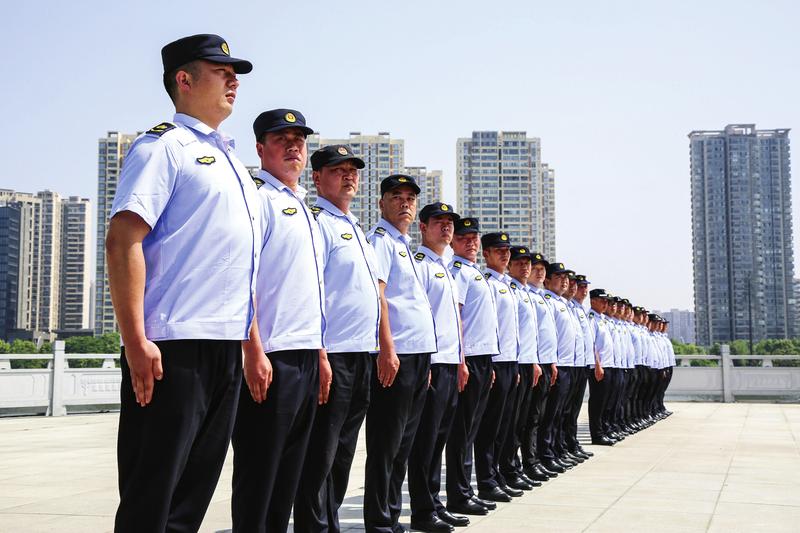 5月以來,曾都區(qū)東城街道綜合執(zhí)法中心開展“學(xué)理論、強技能、練精兵”系列培訓(xùn)活動。圖為執(zhí)法隊員正在開展軍訓(xùn)。 (隨州日報通訊員聶少峰攝)
