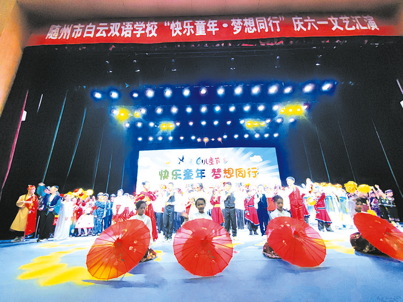 近日,曾都區(qū)白云雙語學(xué)校在神農(nóng)大劇院舉辦慶六一兒童節(jié)文藝匯演活動(dòng),展示學(xué)生們的綜合素質(zhì)和才藝水平,傳遞了該!耙詫W(xué)生為中心,以奮斗的白云人為本,為學(xué)生終身發(fā)展服務(wù)”的教育理念。 (隨州日?qǐng)?bào)全媒記者 鐘金輝攝)