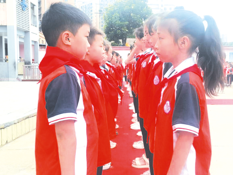 近日,由團(tuán)縣委、縣教育局聯(lián)合舉辦的隨縣2024年少先隊(duì)新隊(duì)員入隊(duì)儀式暨“紅領(lǐng)巾愛祖國”主題隊(duì)日示范活動(dòng)在厲山鎮(zhèn)中心小學(xué)舉辦,厲山鎮(zhèn)中心小學(xué)一年級的61名同學(xué)整齊列隊(duì),迎來神圣莊嚴(yán)的入隊(duì)時(shí)刻。 (隨州日報(bào)通訊員 喻曉玲 杜暢攝)