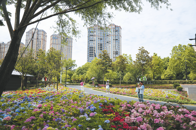 日前,白云湖水環(huán)境園林景觀提升工程項(xiàng)目二期全面建成開(kāi)放。該項(xiàng)目位于白云大道臨水湖岸,連接已建成的白云湖水環(huán)境園林景觀提升工程一期項(xiàng)目(濱水八景),西起編鐘大橋,東至城市綜合體,沿岸依次建設(shè)“萍水相依”“憲法廣場(chǎng)”“水清墨韻”等景觀節(jié)點(diǎn),為市民提供更多的臨水游憩活動(dòng)空間。圖為市民在觀賞繡球花。(隨州日?qǐng)?bào)通訊員聶少峰攝)
