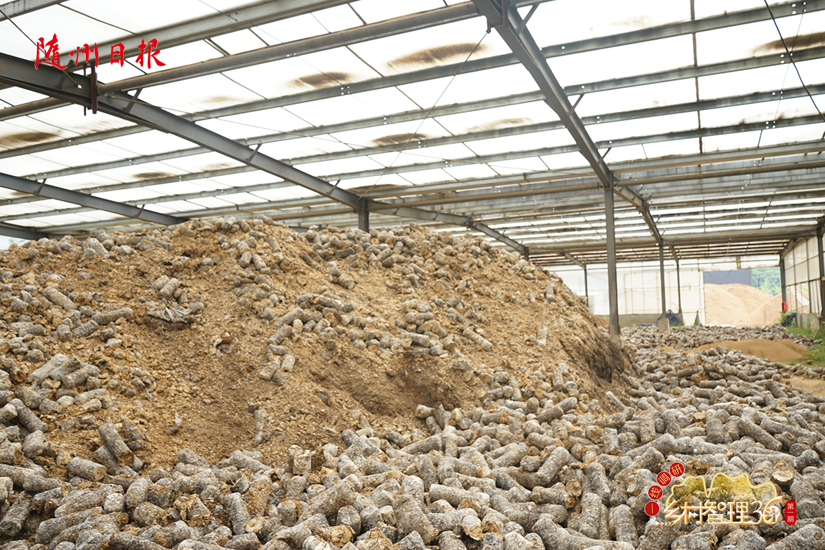 在合作社的一個(gè)大棚內(nèi)看到,60萬個(gè)回收的菌棒在高溫作用下,釋放出濃烈的腐木氣息。這些菌棒經(jīng)過自然渥堆、發(fā)酵,再打碎添加相關(guān)營養(yǎng)元素,就可以用來育秧了。