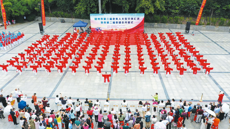 6月30日,市委老干部局、市文化和旅游局在隨城神農(nóng)公園舉行隨州市第三屆老年人文體匯演暨隨州市第二屆老年人體育健身大會(huì)開(kāi)幕式。市政協(xié)副主席程敦懷宣布開(kāi)幕。(隨州日?qǐng)?bào)全媒記者李文軍攝)