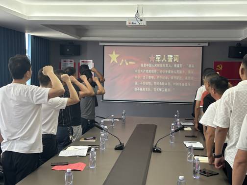 鎮(zhèn)黨委宣傳委員、“兵黨委”何春林帶領(lǐng)大家重溫軍人誓言:“我是中國人民解放軍軍人,我宣誓:服從中國共產(chǎn)黨的領(lǐng)導(dǎo),全心全意為人民服務(wù),服從命令,忠于職守,嚴(yán)守紀(jì)律,保守秘密,英勇頑強,不怕犧牲,苦練殺敵本領(lǐng),時刻準(zhǔn)備戰(zhàn)斗,絕不叛離軍隊,誓死保衛(wèi)祖國!辩H鏘有力的誓言,彰顯軍人風(fēng)采。