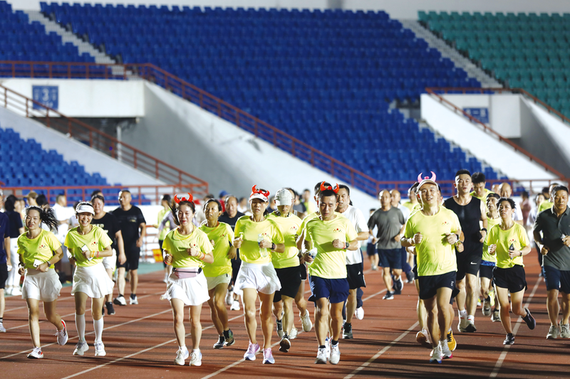 8月8日是全民健身日,2024隨州市“全民健身日”主題活動暨隨州半程馬拉松熒光夜跑活動在隨州濱湖體育場舉行,500多名跑步愛好者參加了夜跑。(隨州日報全媒記者徐斌攝)