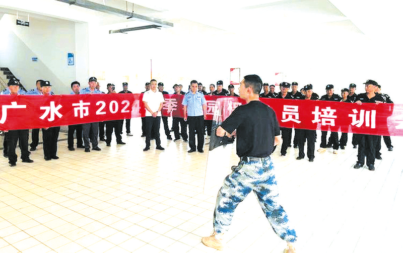 8月19日,市公安局內(nèi)保支隊(duì)聯(lián)合廣水市公安局內(nèi)保大隊(duì)、廣水市教育局,組織內(nèi)保民警送教上門(mén),為300余名教職工和安保隊(duì)員進(jìn)行安全培訓(xùn)活動(dòng),全力提高廣大教職工的安全防范意識(shí),筑牢校園安全防線。 (隨州日?qǐng)?bào)通訊員馬 艷攝)