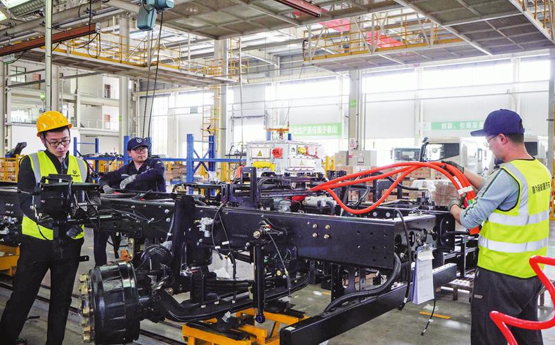 新能源車是近年來出口的一大亮點(diǎn)。在程力集團(tuán)新能源車廠看到,工人們正在裝配一批18噸新能源專用車底盤。今年,該公司已經(jīng)接到新能源車訂單300余臺(tái)。劉峰表示,新能源車的市場空間很大,目前還有一批新能源車訂單在談,將來會(huì)成為外貿(mào)出口的一支重要力量。