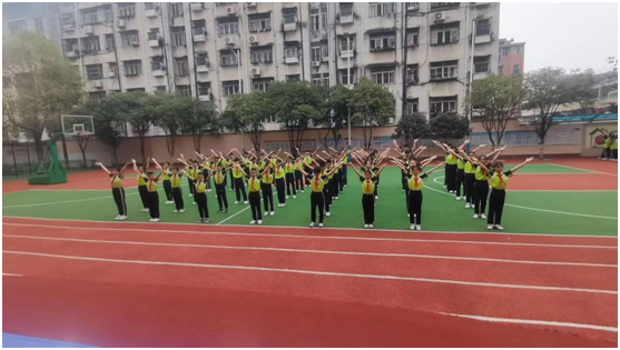 本次比賽的對象是三至六年級的所有學生,比賽由入場、課間操《你笑起來真好看》、退場幾個部分組成,采用現場評分方式進行。賽前,各班班主任與體育老師密切配合,利用大課間和體育課時間積極組織學生訓練,讓每一位同學掌握動作要領、節(jié)奏和力度要求,確保能以最好的狀態(tài)參加比賽。