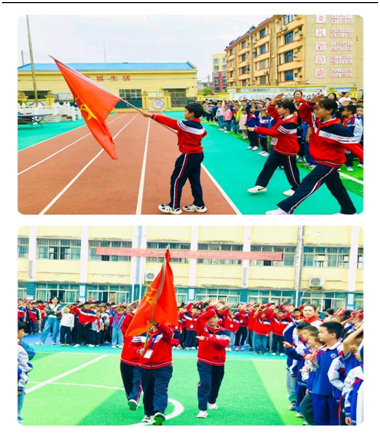 大隊委員會宣讀組建二年級少先隊組織決定及新隊員名單。老隊員們鄭重地為新隊員們佩戴上鮮艷的紅領巾,新隊員們高舉右拳,跟隨大隊輔導員張月老師進行莊嚴的宣誓和呼號。學校少工委委員為新建中隊授中隊旗,并為中隊輔導員頒發(fā)聘書。一面面中隊旗代表著紅色的火種已經(jīng)播撒,未來使命已重任在肩!