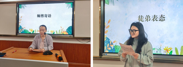 會上,師徒雙方分別進行了發(fā)言。張泉老師承諾:作為師傅,一定會以身作則,做徒弟的榜樣,努力創(chuàng)造一切條件幫助徒弟成長,毫無保留地指導(dǎo)徒弟,和徒弟共同成長。黃羽老師表態(tài)——一定會虛心向師傅學(xué)習(xí)、請教。