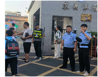 學(xué)校政教處精心組織了一系列的主題教育活動。一是向全體師生和學(xué)生家長發(fā)出倡議,倡導(dǎo)綠色出行、規(guī)范接送行為、加強(qiáng)交通意識教育、文明出行、互相禮讓等;倡議學(xué)生家長不要在將車輛開入近圣門巷子,以免影響孩子們上下學(xué)的正常通行。二是各中隊(duì)舉行“文明交通安全出行”主題班會,制作了統(tǒng)一的PPT,各中隊(duì)利用班隊(duì)會時間召開了“文明交通安全出行”主題班會。三是公安民警、保安、教師組成聯(lián)防一體的“護(hù)學(xué)崗”隊(duì)伍,承擔(dān)學(xué)生進(jìn)出校秩序維護(hù)、安全保衛(wèi)、文明引導(dǎo)等工作,為學(xué)生進(jìn)出校環(huán)節(jié)筑起了一道安全的防護(hù)墻,成為校門口一道亮麗的風(fēng)景線。