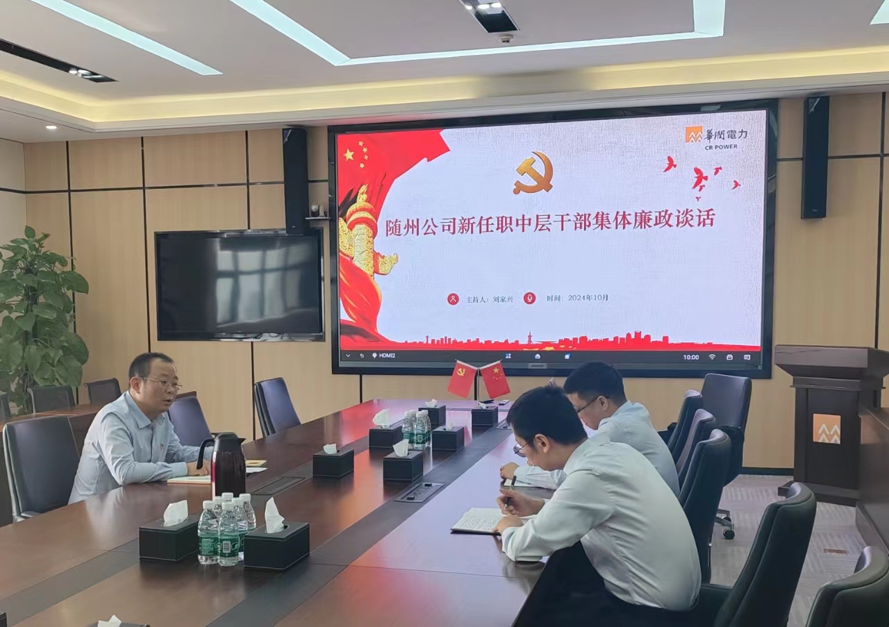 為進(jìn)一步加強黨風(fēng)廉政建設(shè),筑牢新任職干部廉潔自律防線,近期,華潤新能源隨州分公司開展了新任職中層干部集體廉政談話,會議由公司黨委副書記、紀(jì)委書記、副總經(jīng)理劉家興主持。