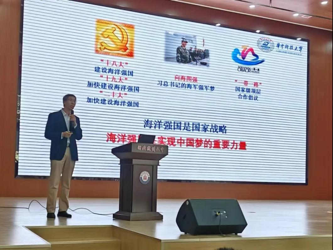 當(dāng)日上午,來(lái)自華中科技大學(xué)的馮大奎教授和李周密教授以“學(xué)長(zhǎng)”的名義給2024級(jí)的學(xué)弟學(xué)妹們帶來(lái)了一場(chǎng)科學(xué)盛宴。他們?cè)凇墩J(rèn)識(shí)海洋結(jié)構(gòu)物中的小物件》的講座中,以淵博的知識(shí)和獨(dú)特的見(jiàn)解,為高一學(xué)子們打開(kāi)一扇通往知識(shí)殿堂的大門(mén)。同時(shí),他們回顧自己在二中的求學(xué)生涯,以自己的親身經(jīng)歷勉勵(lì)莘莘學(xué)子——為理想目標(biāo)而努力奮斗。講座結(jié)束以后,同學(xué)們紛紛和兩位”學(xué)長(zhǎng)“進(jìn)行交流。