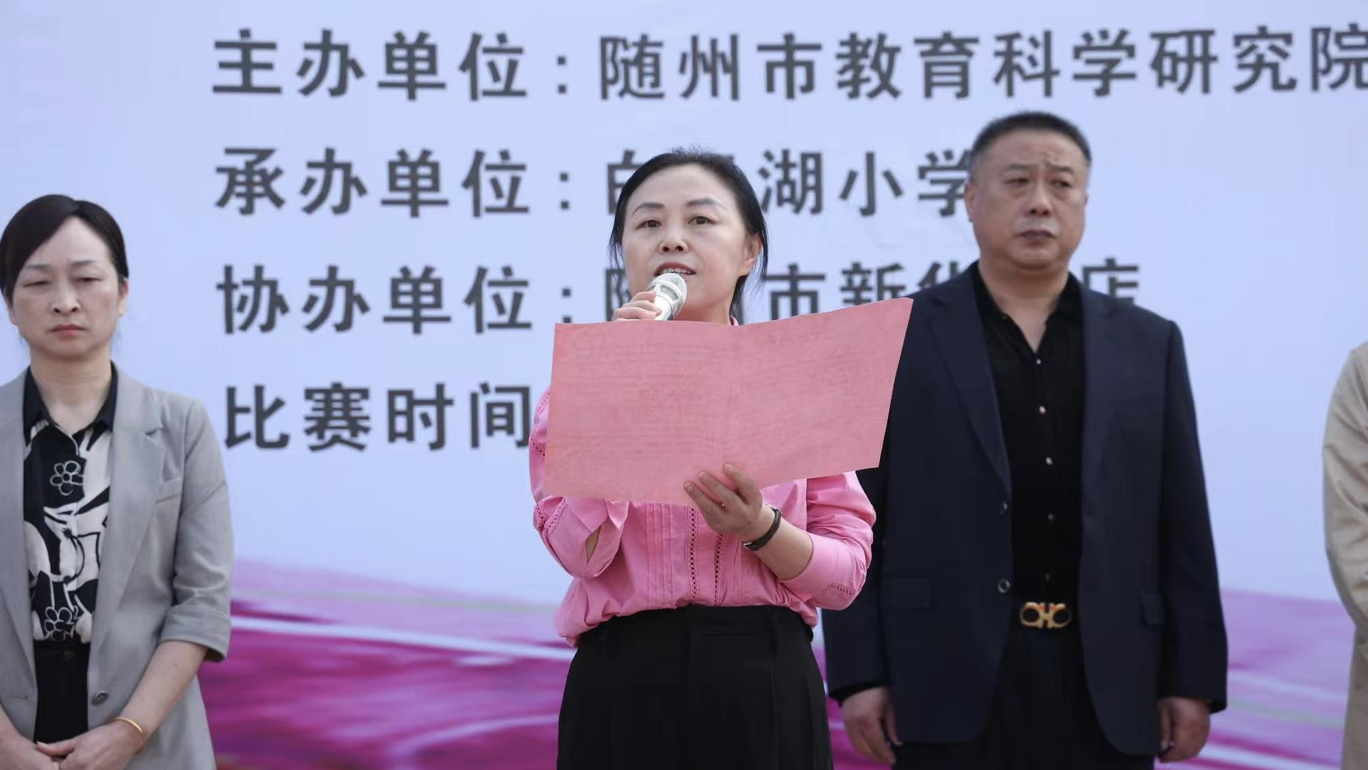首先,曾都區(qū)白云湖小學(xué)副校長金輝致歡迎辭。隨后,隨州市教科院副院長吳軍致辭并宣讀比賽規(guī)則,她強(qiáng)調(diào),舉辦現(xiàn)場書法大賽,是弘揚(yáng)和傳承優(yōu)秀傳統(tǒng)文化的有效舉措,希望廣大師生通過學(xué)習(xí)書法、練習(xí)書法,從中體會(huì)中國書法藝術(shù)的博大精深,讓經(jīng)典點(diǎn)亮人生,讓墨香溢滿校園。最后,曾都區(qū)教研室主任陳全勝宣布比賽開始。