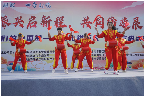 情景舞蹈《英雄贊歌》、隨州慢板《這十年》、充滿活力的非洲鼓表演、悅耳的《自然交響曲》以及氣勢磅礴的表演唱《我是中國人》等節(jié)目輪番上演,精彩不斷。這些節(jié)目從不同角度展現(xiàn)了鄉(xiāng)村振興的成就、文化的傳承與發(fā)展,以及社區(qū)居民積極向上的精神風(fēng)貌。