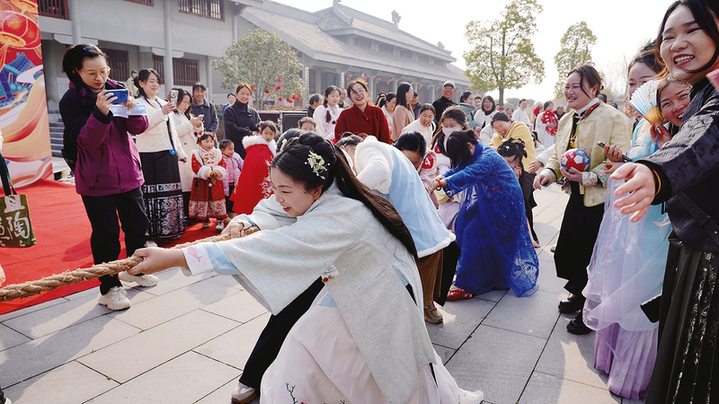 3月8日,隨縣“國(guó)風(fēng)雅韻頌華夏 巾幗筑夢(mèng)譜華章”國(guó)風(fēng)趣味運(yùn)動(dòng)會(huì)在炎帝故里景區(qū)舉行。超300位女同胞身著國(guó)風(fēng)服裝,參與到各個(gè)趣味運(yùn)動(dòng)中來(lái);顒(dòng)共設(shè)有拔河、投壺、射箭、蹴鞠和蒙眼敲鑼等5個(gè)趣味項(xiàng)目,F(xiàn)場(chǎng)還設(shè)有非遺漆扇DIY、茶藝和艾灸教學(xué)、公益義診等項(xiàng)目,讓廣大女同胞們?cè)谶\(yùn)動(dòng)之余感受傳統(tǒng)文化的獨(dú)特魅力。(隨州日?qǐng)?bào)通訊員陳首龍攝)