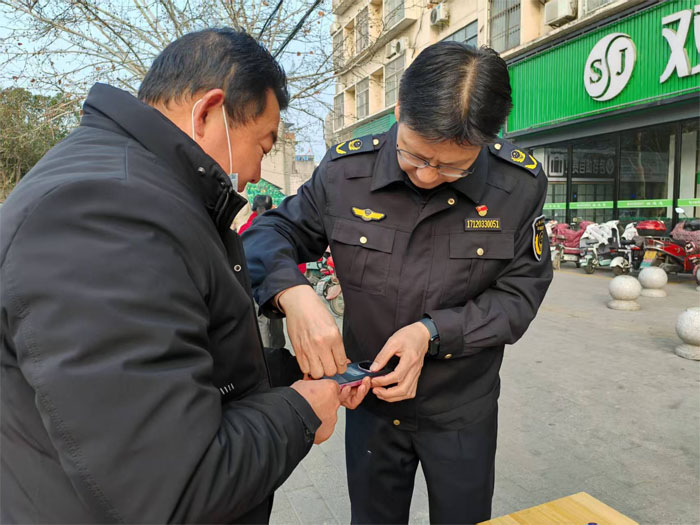 南郊市場(chǎng)監(jiān)管所開(kāi)展“手機(jī)變砝碼”計(jì)量惠民活動(dòng),對(duì)消費(fèi)者隨身攜帶的手機(jī)進(jìn)行稱(chēng)重,加貼統(tǒng)一制式的重量標(biāo)簽。