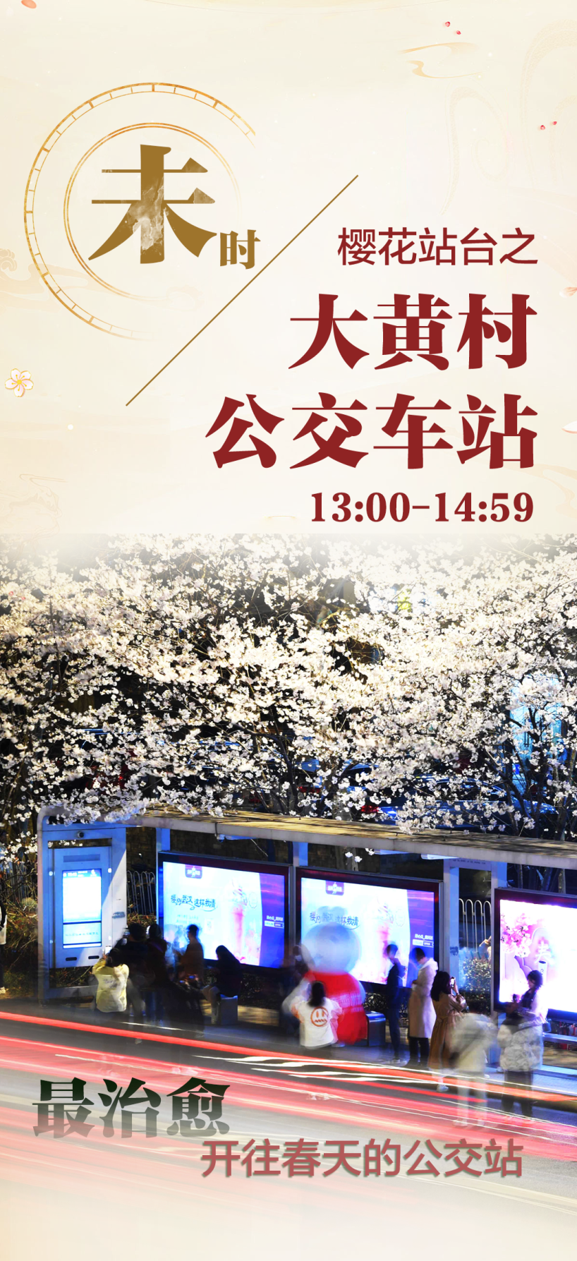 珞喻東路的春風拂過,大黃村站臺便墜入櫻色海洋。公交車載著晨光與暮色穿梭,粉白花瓣簌簌落在候車人肩頭。從光谷四小天橋往下拍,氛圍感在快門聲里定格成時光書簽。今年,櫻花車站升級,打造了透明花瓣形狀的玻璃頂棚,等車間隙,抬頭就能收下所有浪漫。