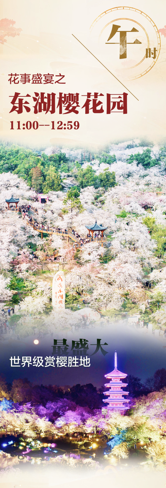 東湖櫻花園是春風揉碎的云霞,萬株粉櫻沿水岸蜿蜒成流動的詩行,作為世界三大賞櫻勝地之一的東湖櫻花園,栽種了80多個品種、萬余株櫻花,盛開時節(jié)滿樹爛漫。
