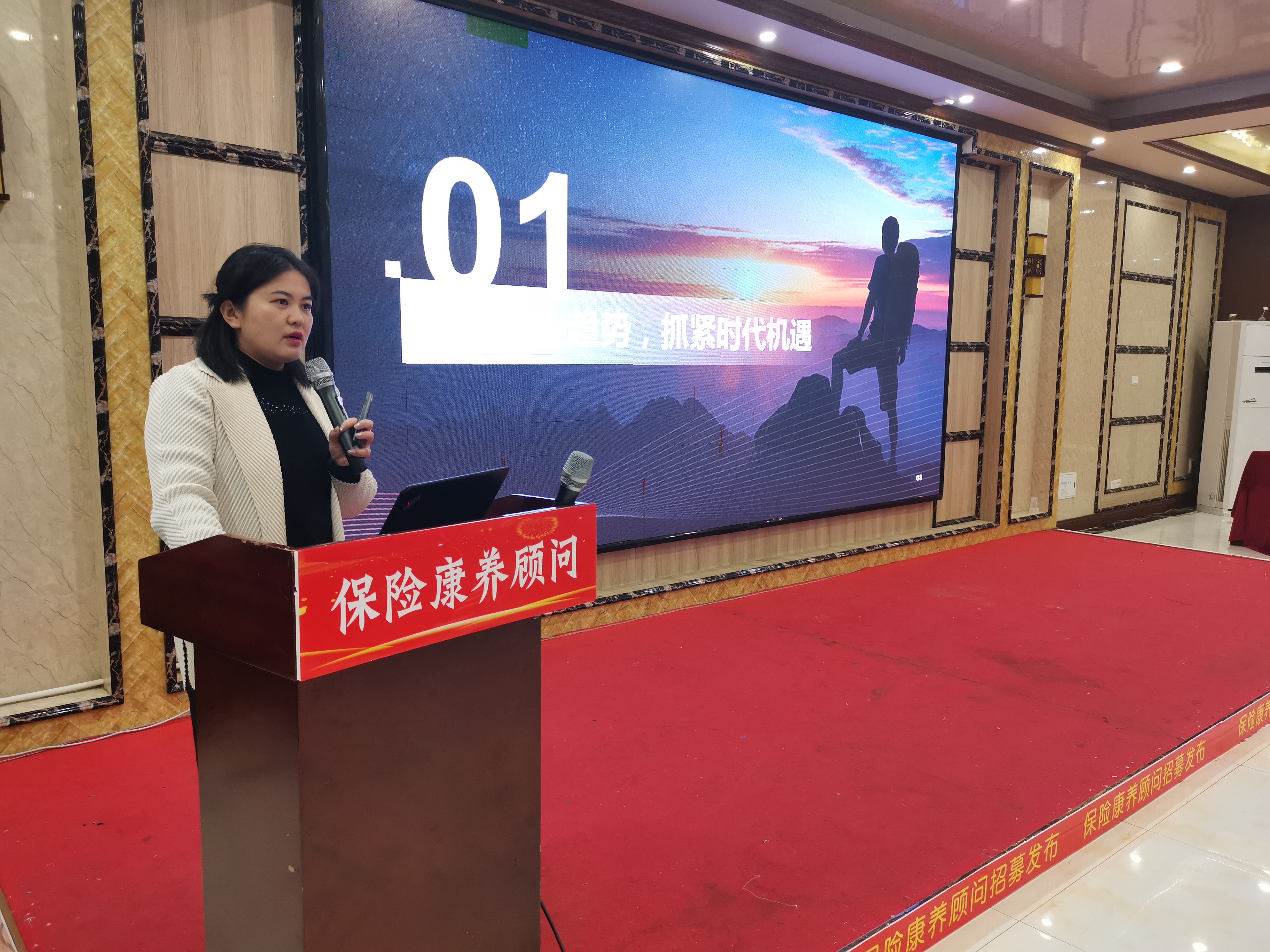 平安人壽隨州中支負責人致歡迎辭,老年化社會加速到來,居民對健康管理及養(yǎng)老規(guī)劃的需求持續(xù)升級,平安積極響應國家政策依托綜合金融+醫(yī)療養(yǎng)老生態(tài)閉環(huán),為客戶提供一站式服務,希望更多有志之士加入,攜手開拓健康養(yǎng)老藍海市場,實現(xiàn)個人價值和社會價值的雙贏。