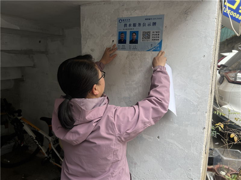 為了持續(xù)提升供水服務(wù)質(zhì)量,營造更加優(yōu)質(zhì)的營商環(huán)境,隨州市水務(wù)集團城市供水公司精心制作了5200張藍色調(diào)的供水服務(wù)公示牌,并將它們張貼于居民點的顯眼位置,實現(xiàn)了便民服務(wù)的全面覆蓋。