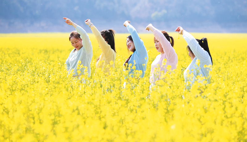 金黃的油菜花海吸引了眾多游客踏青賞花,樂(lè)享春光!斑@里有城里看不到的風(fēng)景,心情非常愉悅!眮(lái)自隨州城區(qū)的郭桂林說(shuō),自己常約好友出門觀光拍照,此次她們一行6人,“組團(tuán)”來(lái)到柳林賞花踏青。