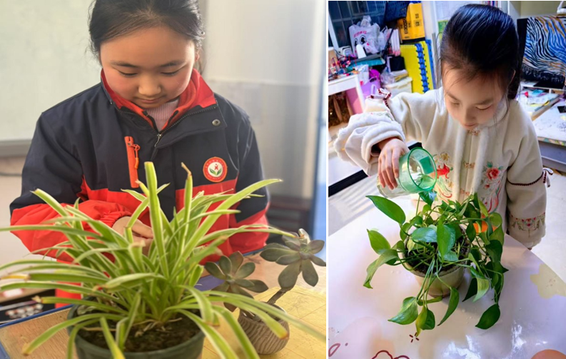 在各班綠化角建設過程中,同學們們展現(xiàn)出了極高的熱情和創(chuàng)造力。他們利用課余時間,定期為植物澆水、施肥、修剪枝葉,確保植物的健康成長。大家不僅親手種下了綠植,還積極了解養(yǎng)護知識,承擔起維護、照料這些綠色生命的責任。盆盆綠植不止裝飾了校園,還把愛綠護綠意識植入了學生的心田。