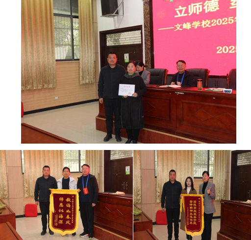 黨支部書記、校長劉浩、副校長王力、副校長沈俊俊為初中部凌書勇、小學(xué)部包莉筠老師頒發(fā)了學(xué)生家長贈送的錦旗,為曾都區(qū)2024年“新華杯”中小學(xué)生文藝節(jié)目匯演合唱優(yōu)秀指導(dǎo)教師王玲頒發(fā)了榮譽(yù)證書。