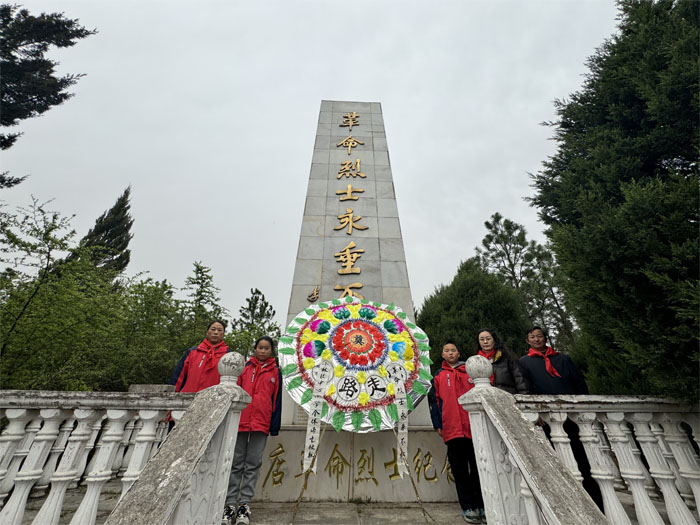 上午9時,祭掃活動開始。第一項,師生代表致辭,中隊輔導員發(fā)表了慷慨激昂的致辭,致辭中,他為同學們講述了那段波瀾壯闊的歷史,闡述了先烈們?yōu)榱死硐胄拍,不惜拋頭顱、灑熱血的英勇事跡。最后,他強調了此次祭掃活動對于傳承紅色基因、弘揚愛國主義精神的重要意義。學生代表做了表態(tài)發(fā)言,他代表同學們表示一定繼承先烈遺志,為中華復興而奮斗。第二項,全體肅立,奏國歌,出國旗,向國旗敬禮。第三項,師生代表向烈士墓敬獻花圈,全體默哀3分鐘,以表達對先烈的哀思。第四項,同學們在中隊輔導員的帶領下瞻仰烈士紀念碑,深切緬懷革命先烈。