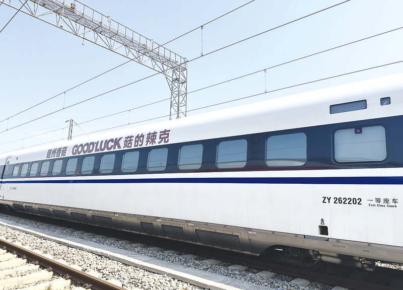 作為“隨州香菇 香飄世界”的系列宣傳之一,此次高鐵宣傳選擇了客流量比較大的兩條線路,復(fù)興號(hào)G2386宜昌-上海線與和諧號(hào)G1528襄陽(yáng)-北京線,日均載客量超3500人次。在車體上印有明顯的“隨州香菇GOODLUCK菇的辣克”冠名字樣,車廂內(nèi)的頭枕巾、桌板貼、行李架彩貼、車廂出入口畫框等均有“隨州香菇”的宣傳字樣,LED顯示屏實(shí)時(shí)滾動(dòng)品牌標(biāo)語(yǔ)。此外,每站的語(yǔ)音播報(bào)均會(huì)推介“隨州香菇”。