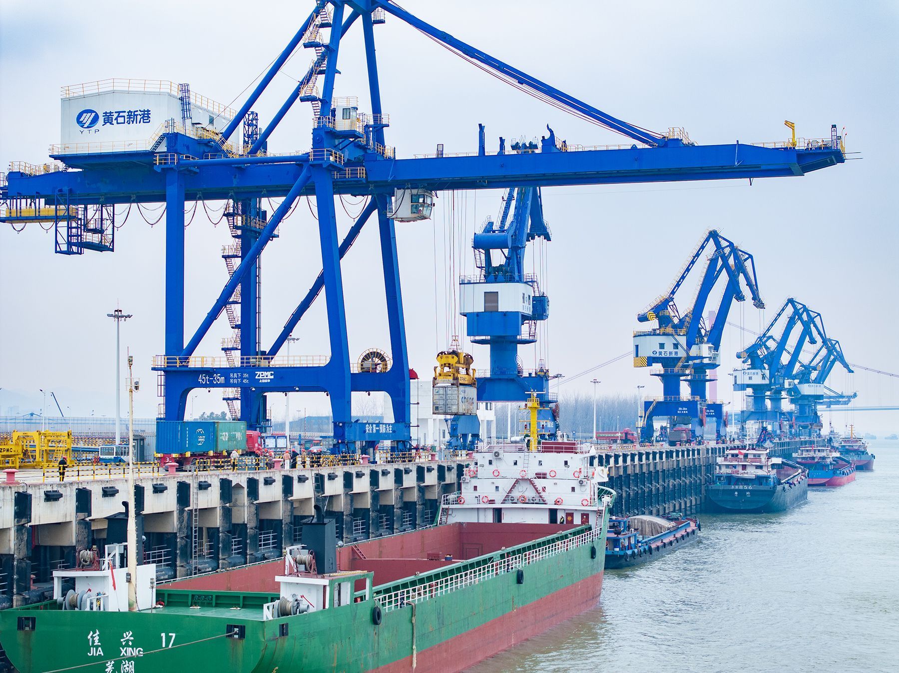 黃石新港2024年正式邁入中國內(nèi)河億噸大港行列。圈媒聯(lián)盟 黃石日報記者 石勇 攝