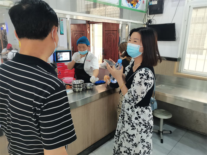 隨后,家長代表們實(shí)地參觀了加工間、烹飪區(qū)、蒸煮間、備餐間等場所。窗明幾凈的操作環(huán)境、分類存放的食材貨架以及“明廚亮灶”監(jiān)控系統(tǒng)的實(shí)時展示,都讓家長們頻頻點(diǎn)頭稱贊。加工區(qū)里,食堂工作人員身著統(tǒng)一工作服,戴帽子、口罩,嚴(yán)格遵守衛(wèi)生規(guī)范。他們熟練地操作著各種設(shè)備,將食材加工成美味的菜肴。從洗菜、切菜到烹飪,每一個環(huán)節(jié)都一絲不茍,確保食品的安全與衛(wèi)生。