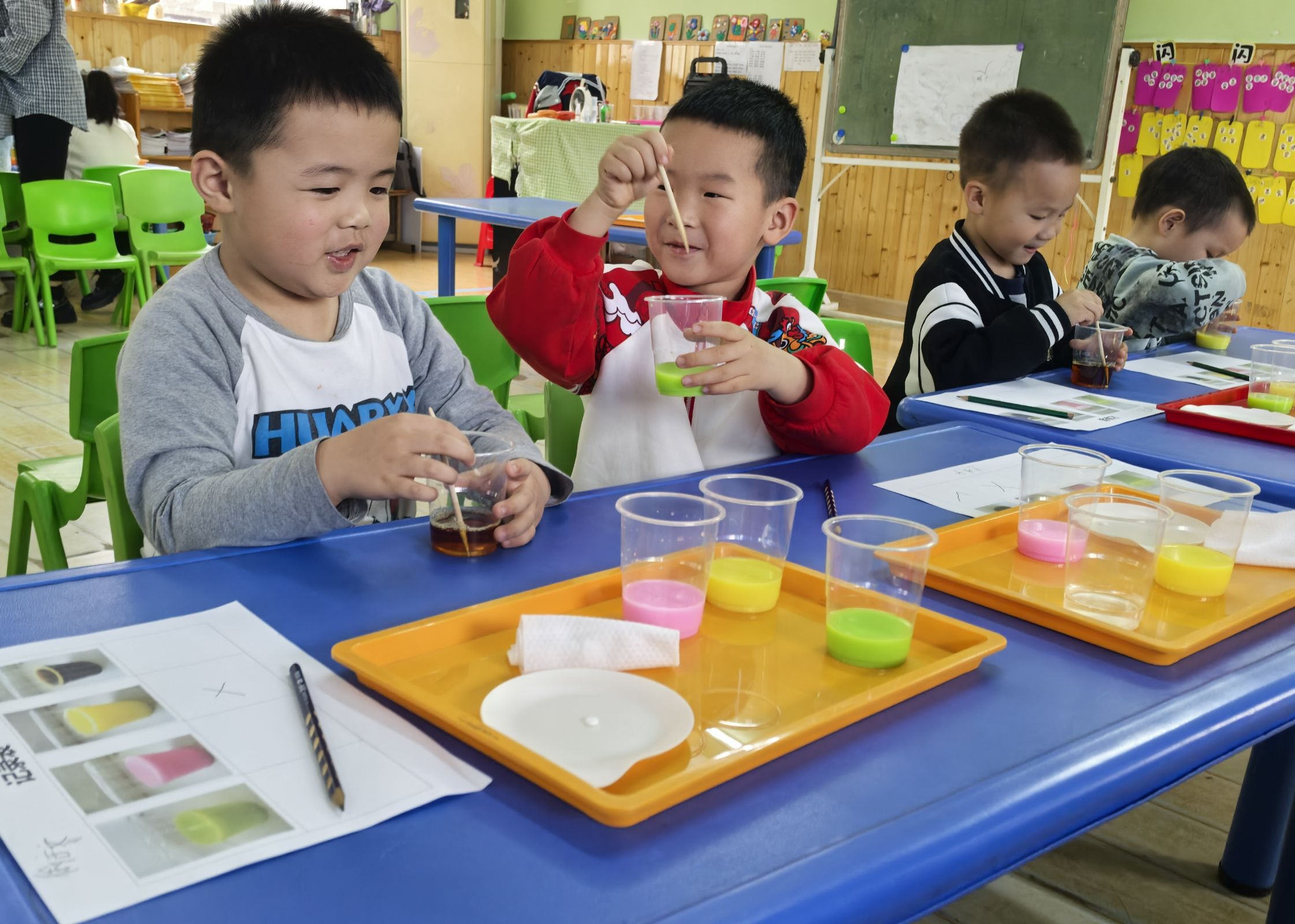 本次公開課以科學(xué)活動(dòng)為課題內(nèi)容,教師們根據(jù)各班幼兒年齡特點(diǎn)和興趣精心準(zhǔn)備,以生活化、游戲化的形式設(shè)計(jì)活動(dòng),反復(fù)打磨各個(gè)環(huán)節(jié)。大班孩子們利用油水分離的原理找出嫌疑犯,過了一把偵探癮;通過實(shí)驗(yàn)發(fā)現(xiàn)“水往高處流”的秘密;見證隱形畫的神奇,并嘗試制作隱形畫;中班的孩子們變身美容師,為蛋寶寶去除斑點(diǎn);使用各種材料嘗試讓泡泡像皮球一樣跳起來;發(fā)現(xiàn)和感知生活中的靜電現(xiàn)象;在混合顏料的過程中感知色彩變化……活動(dòng)現(xiàn)場精彩紛呈,孩子們專注實(shí)驗(yàn)、大膽提問和熱烈互動(dòng),展現(xiàn)了科學(xué)探究的獨(dú)特魅力。