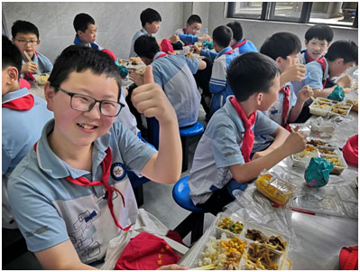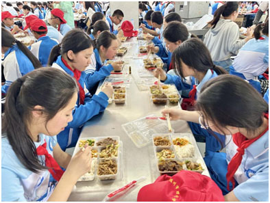 中午時(shí)分,師生共赴食堂就餐,整潔的環(huán)境、豐富的菜品和有序的用餐流程,讓六年級學(xué)生感受“舌尖上的文帝溫度”。餐桌上,兩校學(xué)生熱情交流,分享見聞,在煙火氣息中拉近了距離。