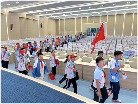 文藝匯演結(jié)束后,六年級師生在志愿者帶領(lǐng)下開啟校園參觀之旅。從寬敞的大操場到書香四溢的教學(xué)樓,從設(shè)施完備的綜合樓球館到各具特色的社團(tuán)活動(dòng)室,每一處角落都讓學(xué)生們充滿好奇。在閱讀角,他們翻閱豐富的藏書;在校園心愿墻,他們駐足欣賞學(xué)生的理想;在優(yōu)秀學(xué)子表彰榜,聆聽小解說員的講解……校園里的每一處細(xì)節(jié),都展現(xiàn)著文帝學(xué)校獨(dú)特的魅力。
