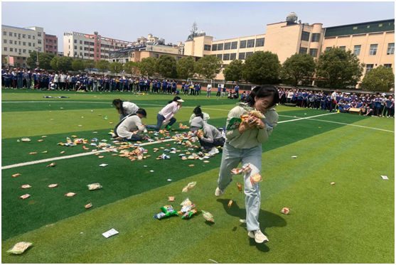 本次運動會突破傳統(tǒng),將競技與趣味巧妙結(jié)合。50米接力賽中,小選手們?nèi)珉x弦之箭,傳遞團結(jié)與速度;袋鼠跳項目里,孩子們套著彩袋蹦跳前行,憨態(tài)可掬;投準(zhǔn)賽場上,精準(zhǔn)的拋物線牽動人心。最令人沸騰的當(dāng)屬“零食大作戰(zhàn)”環(huán)節(jié)——老師們化身“零食護衛(wèi)隊”,沖鋒陷陣為班級爭奪“戰(zhàn)利品”,孩子們則在場邊搖旗吶喊,“老師加油!”“快沖!”的助威聲此起彼伏。當(dāng)滿載零食的籃子被高高舉起時,歡呼聲瞬間點燃全場,師生同樂的溫情畫面成為運動會的暖心注腳。